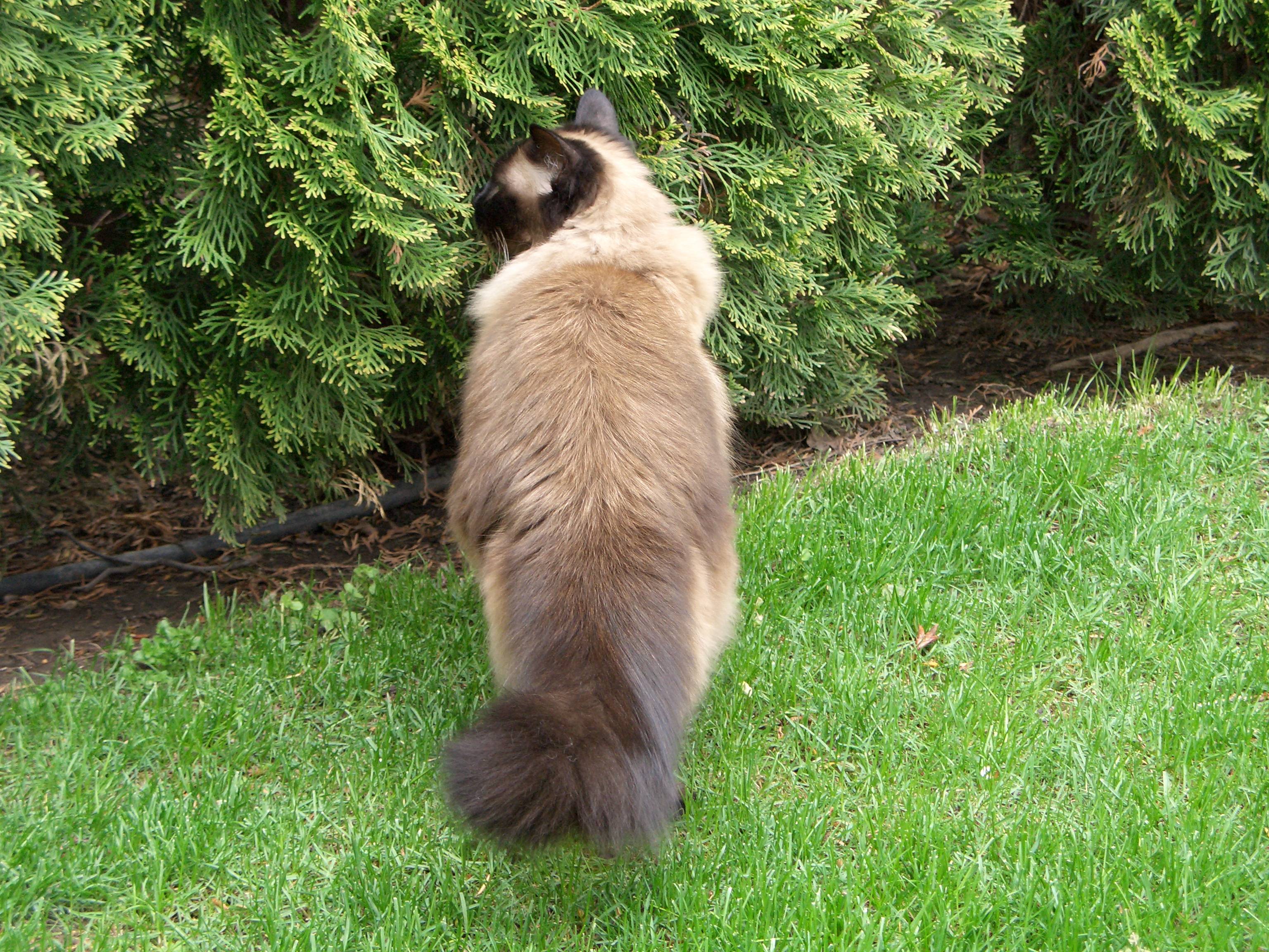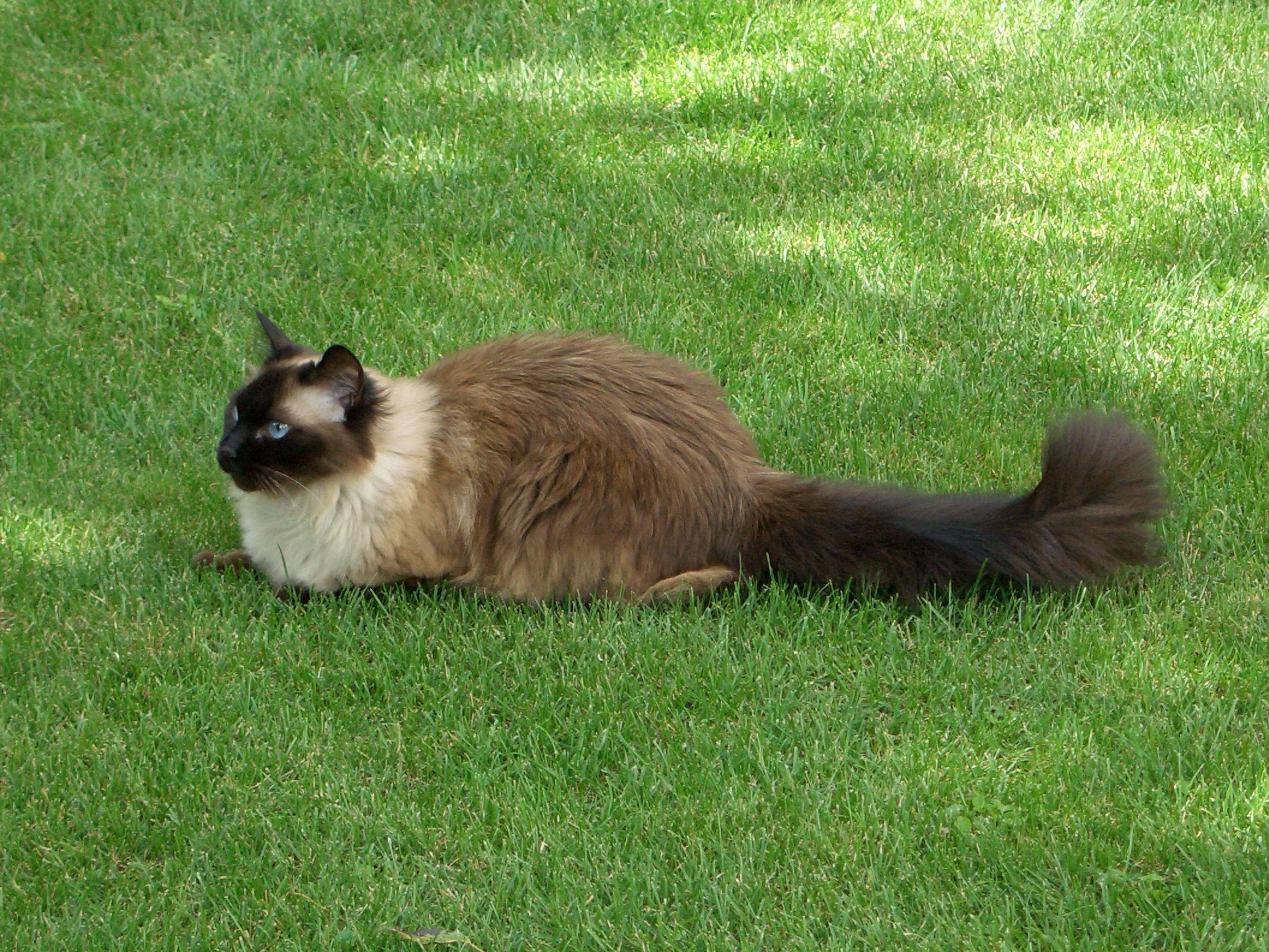 a vadászterületemet. A ragdoll, azaz rongybaba macskafaj alig néhány évtizedes múlttal rendelkezik, így viszonylagosan új tenyészetnek számít. Tagjai sziámi apától és birman anyától származó utódok, akik mindkét fajból viselnek magukon különféle jegyeket. A sziámi génállományból jellemző például a lenyűgözően kék szem, az ék alakú fej, a világos krémszínű - míg máshol sötét csokibarna (fókabarna) - szőrtakaró, míg a birman vonulatból a félhosszú selyembunda, a téli időszakban megjelenő dús gallér, a lompos üvegmosókefe-farok. Gazdám szerint a viselkedésem gyakran cseppet sem macskára, inkább egy mókusra emlékeztető, beleértve a mozgásom különféle sajátosságait is. |
