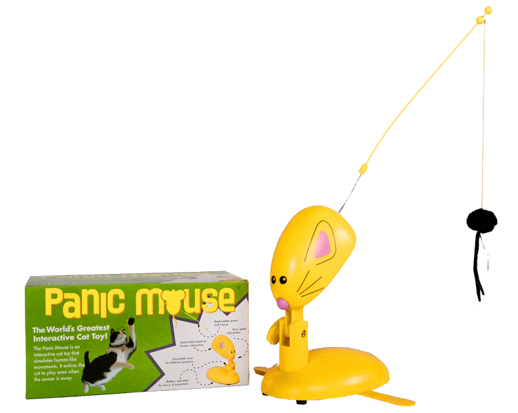 Telt s múlt az idő. Egy szép tavaszi napon egy különleges - egérszerű! - motoros masinát kaptam ajándékba! Ez a készülék külső beavatkozás nélkül, önállóan játszott velem, pl. egeret vagy más bolyhos gombócot lóbálva minden létező irányban, véletlenszerűen, olykor meg-megállva és jól támadásra ingerelve. Bár igen kreatív találmány, én azonban jobban szerettem játékok közben a gazdi közelségét, így a Panic Mouse névre hallgató, harci szórakoztató eszközt pár évvel később a házunkat őrző Floki cicának ajándékoztam. |